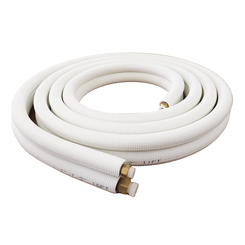 The 16 ft. line set is ready for simple and easy connection with ends of the copper pipes pre-flared with nuts with1/4" liquid and 1/2" suction lines. The copper tube is made of highly purified cathode copper (99.99%) and seamless, ensuring long-lasting durability free of corrosion and leaks.